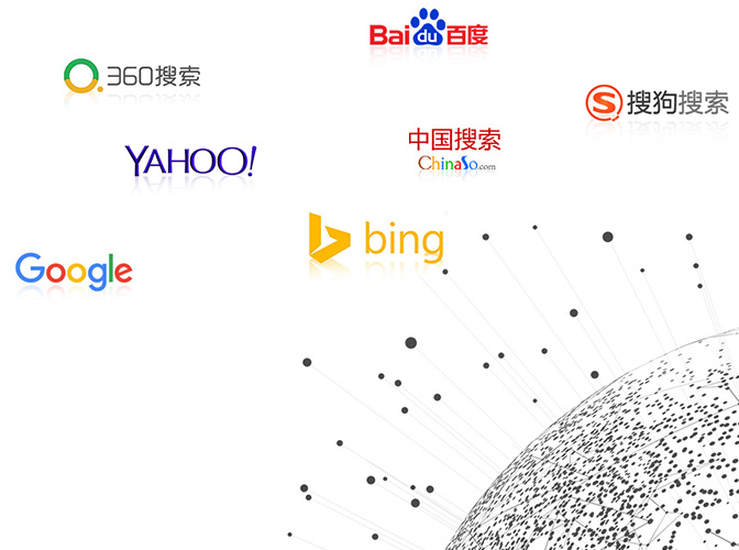 AI搜索排名覆盖百度、360搜索、搜狗搜索、GOOGLE、YAHOO、必应、中国搜索7大搜索引擎,其中包括电脑端和手机端,全网推广不留死角。