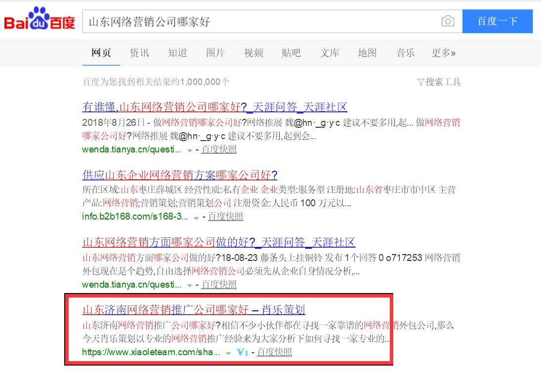 比如:我们的客户会搜 山东网络营销公司哪家好?网络营销公司哪家靠谱?