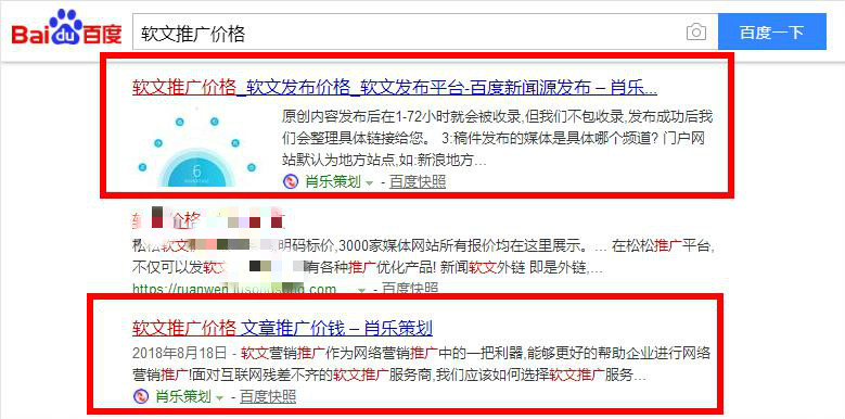 原创软文编写完成之后,开始进行软文的发布投放,可以选择一些高质量收录好的媒体平台,发布之后一旦被百度收录,我们的软文内容就会获得靠前的排名,目标客户搜索我们的关键词,就可以看到我们的软文广告。