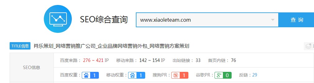 就拿我们肖乐策划团队为例子,我们公司身为网络营销外包公司,那么,手先就得给自己做一个挺好的网络营销推广。我们目前在百度搜索引擎,已经获得了大量的行业大量的关键词优化排名,比如关键词:网络营销外包公司,网络营销外包方案、网络营销外包 等等,我们都做到了手页。