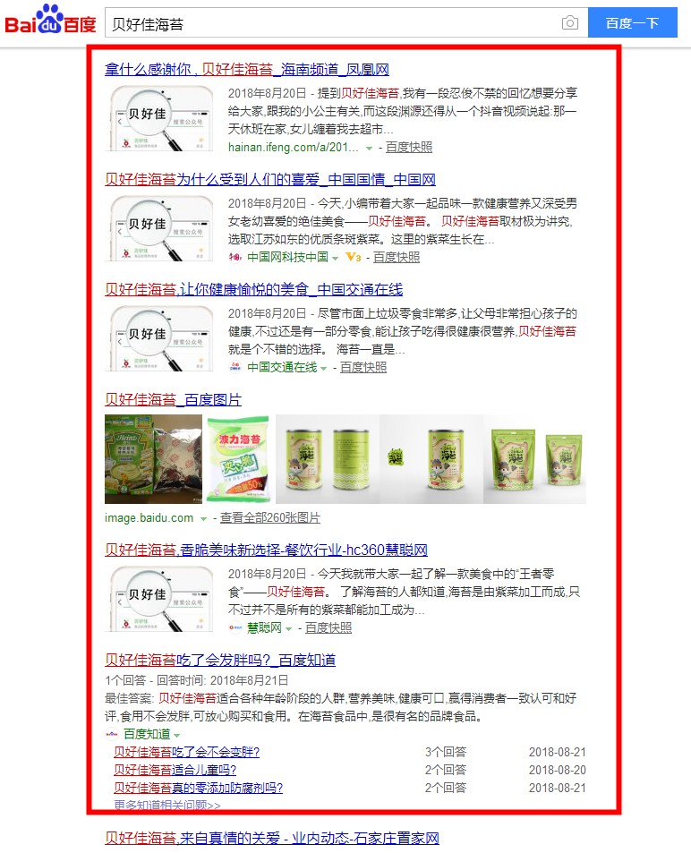 案例:百度一下 贝好佳海苔